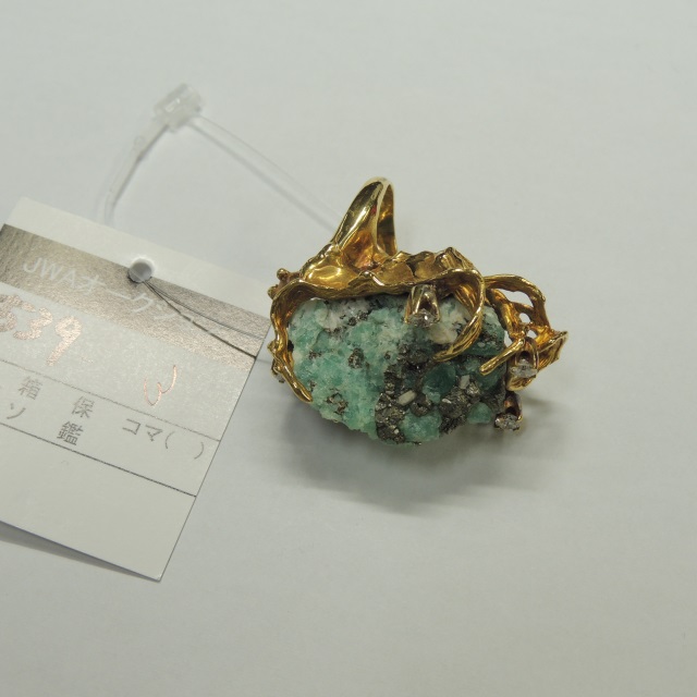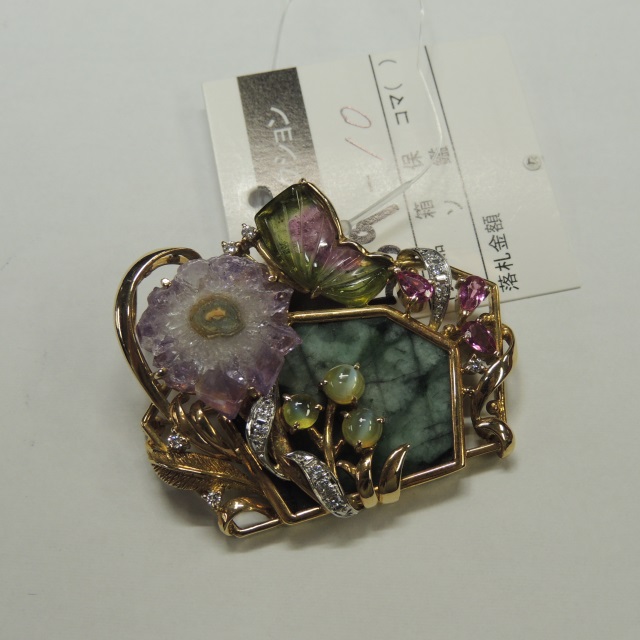 ペン・ブローチ エメラルド トルマリン キャッツアイ ダイヤ K18/Pt900 27.80g 石目:E22.42 D0.218 3.17 0.63 1.99 11.19