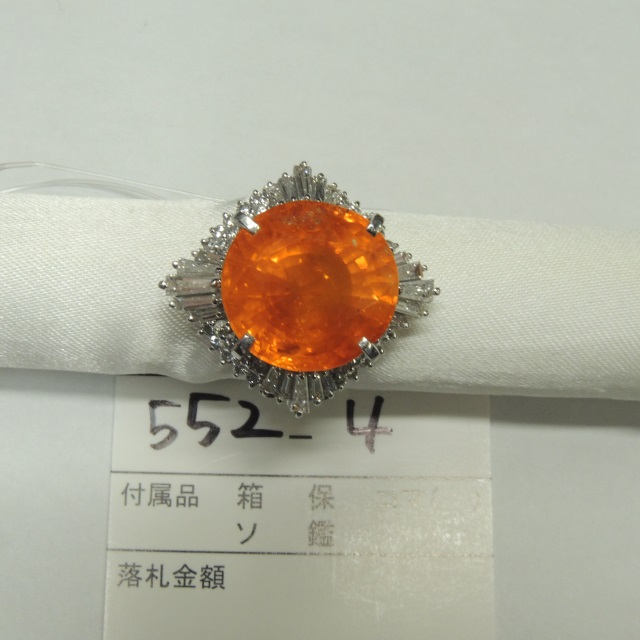 リング オレンジサファイア ダイヤ Pt850 16.70g 中鑑 石目:S19.49 FD1.50