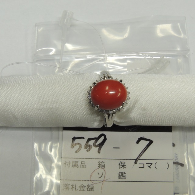 リング サンゴ ダイヤ Pt900 8.80g 中ソ