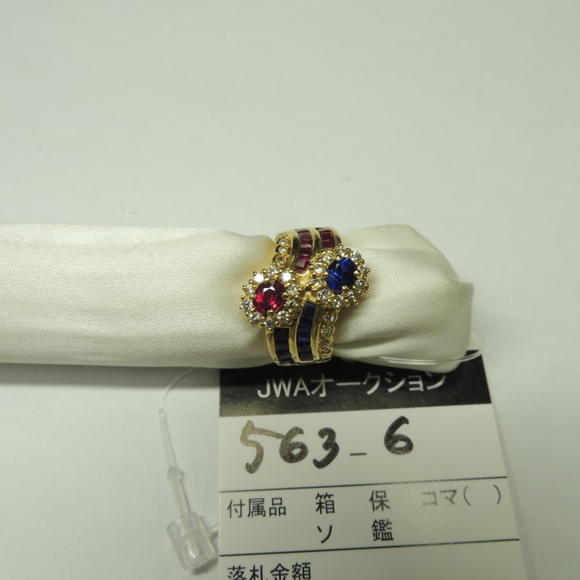 リング ルビー サファイア ダイヤ K18 6.70g 石目:R0.95 S0.95 D0.42