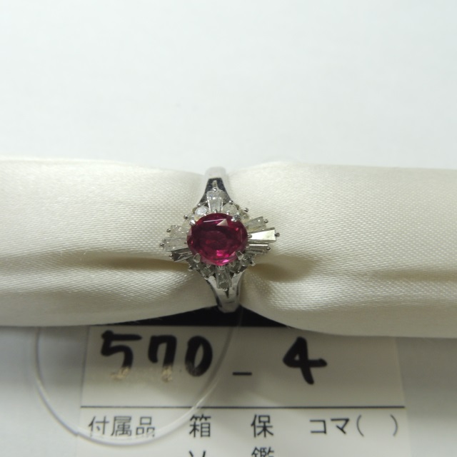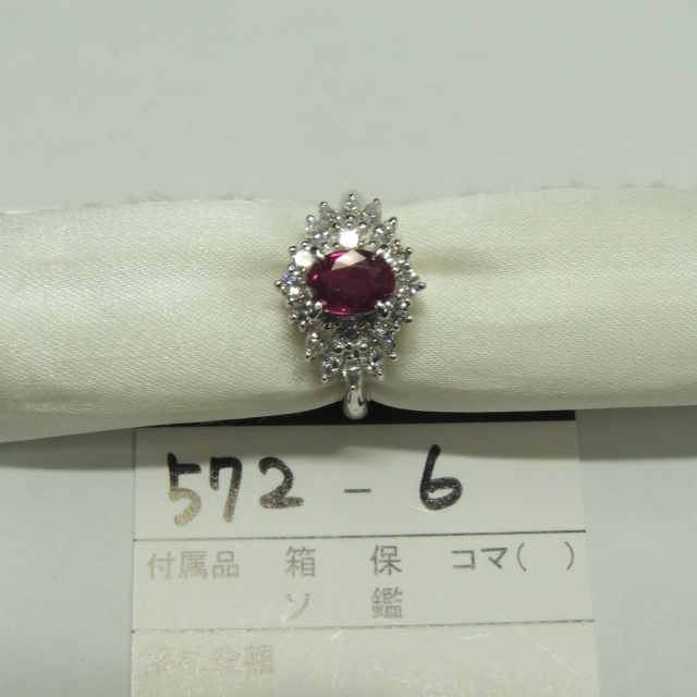 リング ルビー ダイヤ 石目ソーティング刻印と違(処理石) Pt900 8.20g GRJソ 石目:1.15 D0.16