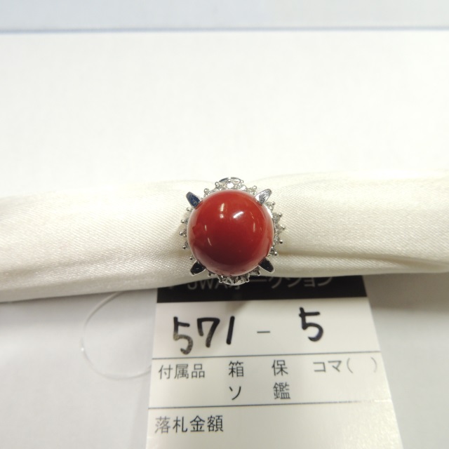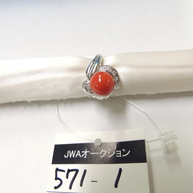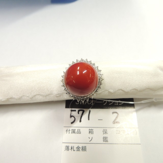 リング サンゴ ダイヤ Pt900 12.60g 石目:D0.41