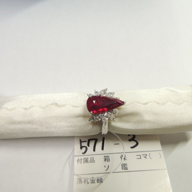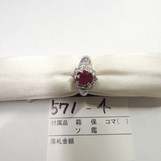 リング ルビー ダイヤ Pt900 9.10g 鑑 石目:3.414 D0.72