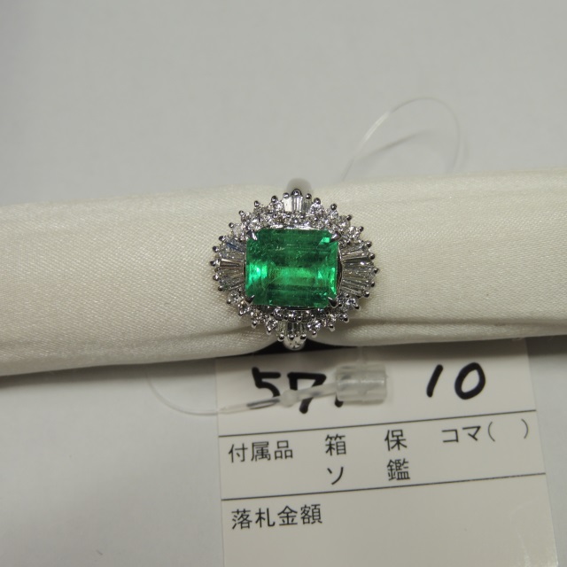 リング エメラルド ダイヤ Pt900 9.40g 石目:3.77 D0.89