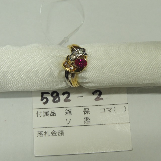 リング ルビー ダイヤ K18YG/Pt900 4.00g 石目:R0.07 D0.06