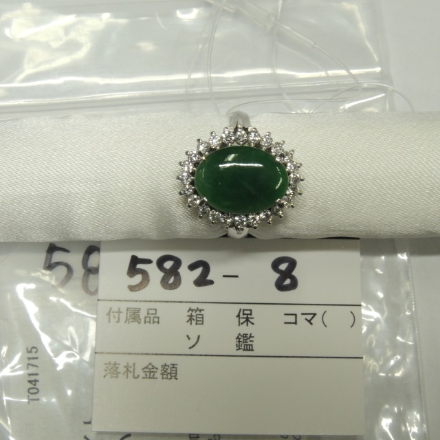 リング ヒスイ ダイヤ Pt900 7.80g 中ソ 石目:J2.23 D0.50