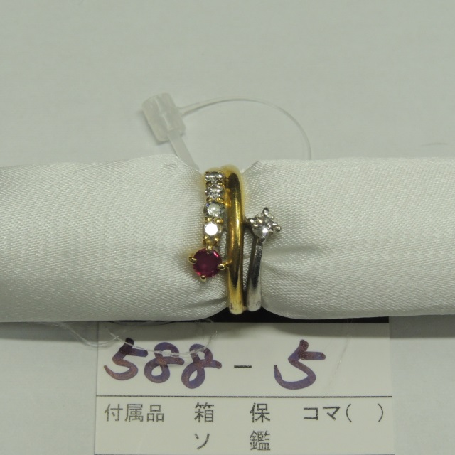 リング ルビー ダイヤ K18/Pt900 5.00g 石目:R0.26 FD0.36