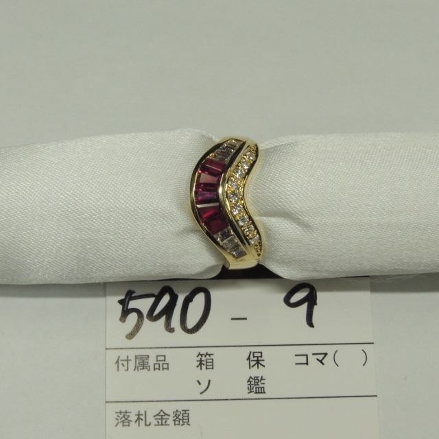 リング ルビー ダイヤ K18YG 5.40g 石目:D0.30 D0.15 R0.60