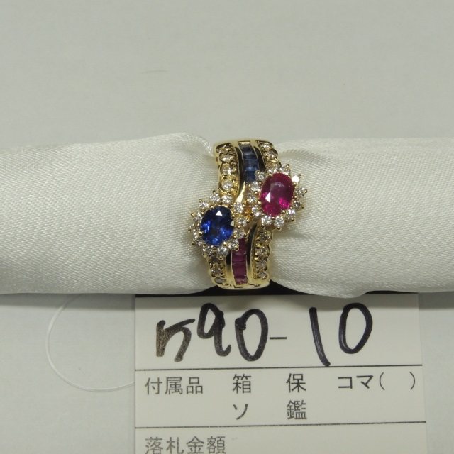 リング ルビー サファイア ダイヤ K18YG 7.90g 石目:R1.0 S1.0 D0.5