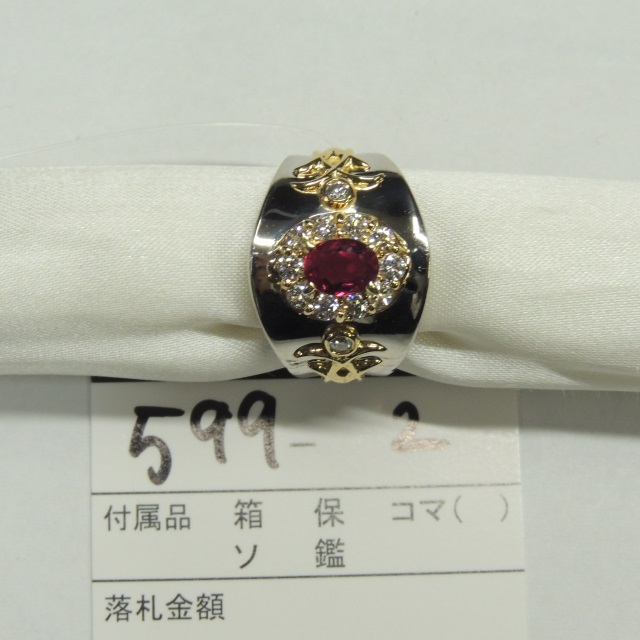 リング ルビー ダイヤ K18YG/Pt900 12.20g 鑑 石目:R0.75 D0.51