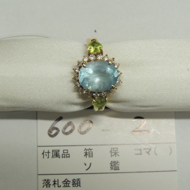 リング ブルートパーズ ペリドット ダイヤ K18YG 5.40g 石目:BT3.02 P0.51 D0.31