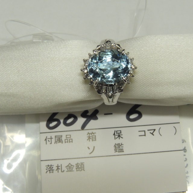 リング アクアマリン ダイヤ Pt900 7.70g GRJソ 石目:3.29 0.45