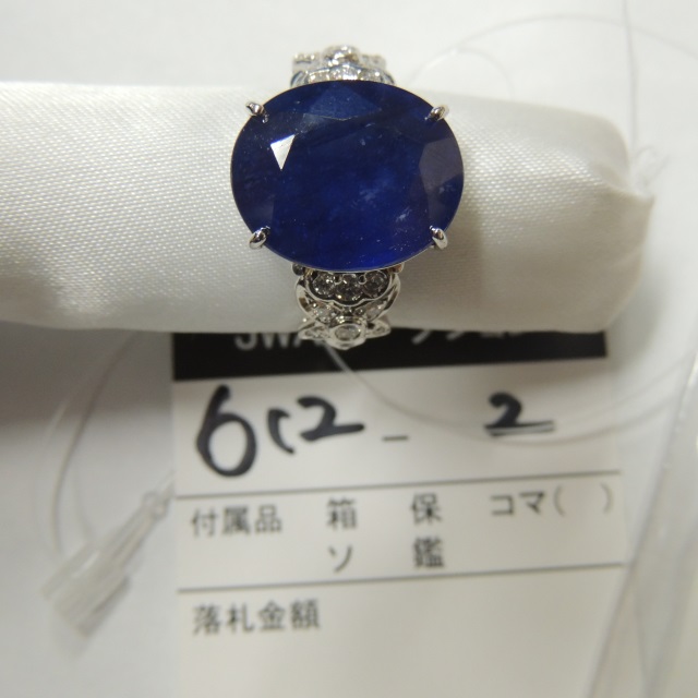 リング ブルーサファイア ダイヤ #10 処理石 Pt900 10.60g GRJソ 石目:12.685 D0.30