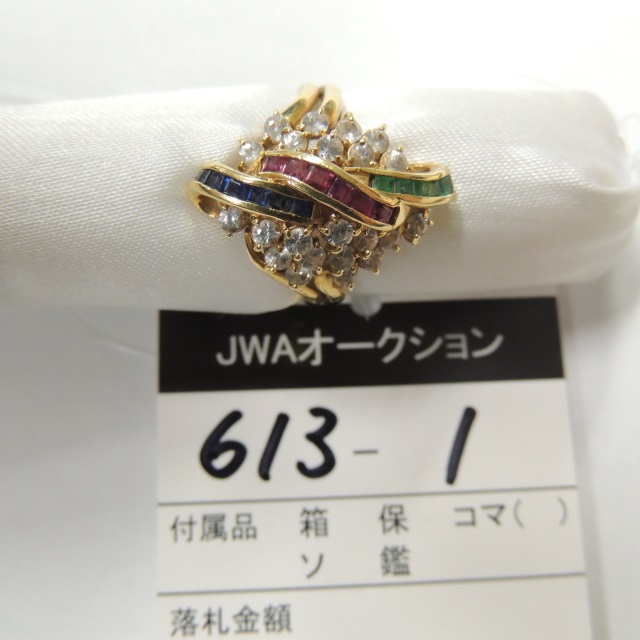 リング ホワイトサファイア ルビー サファイア エメラルド K18YG 5.40g 石目:W1.08 R0.35 S0.32 E0.14