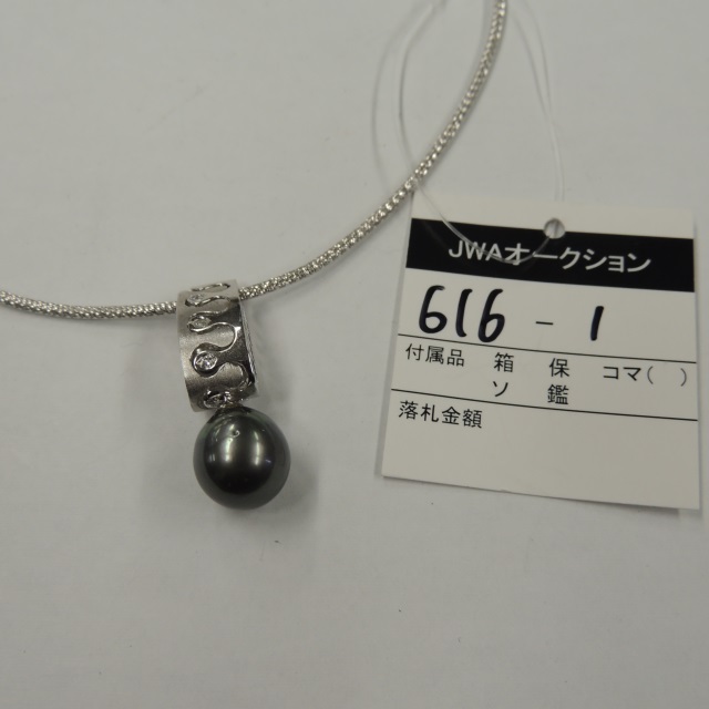 ペン・ネック 黒パール ダイヤ K18WG 16.10g 石目:D0.1