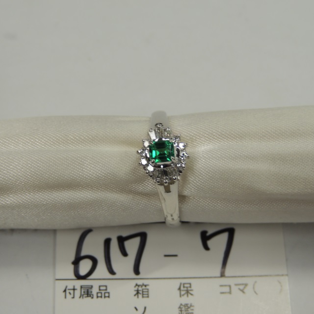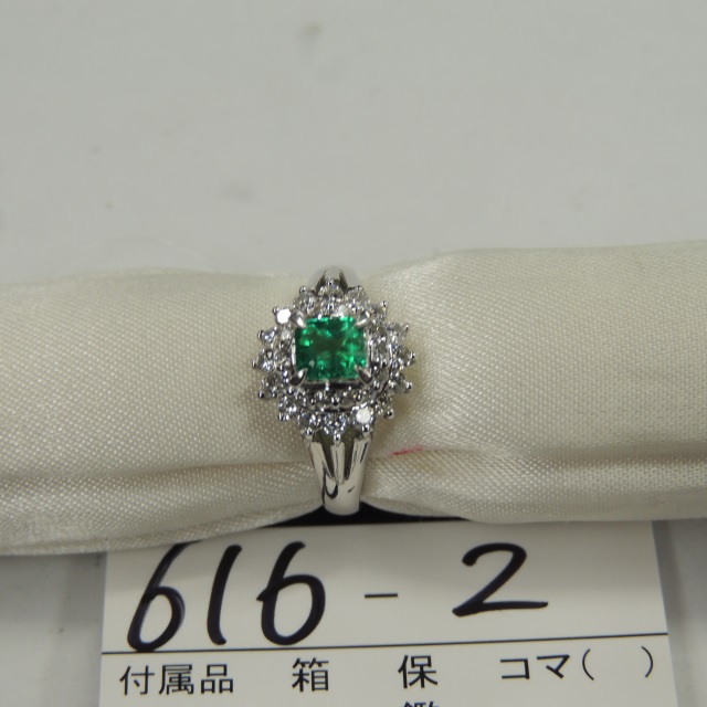 リング エメラルド ダイヤ Pt900 3.20g 鑑 石目:0.21 D0.20