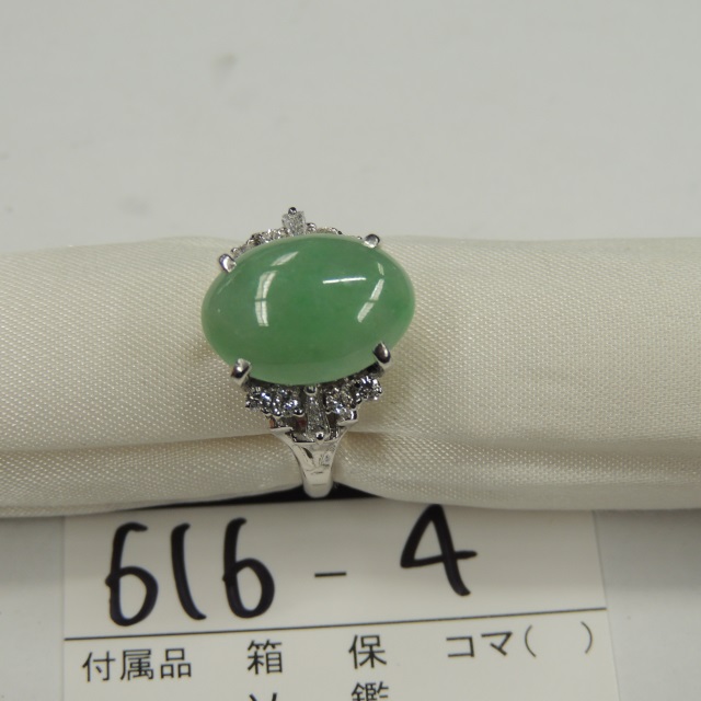 リング ヒスイ ダイヤ Pt900 7.10g 鑑 石目:D0.28
