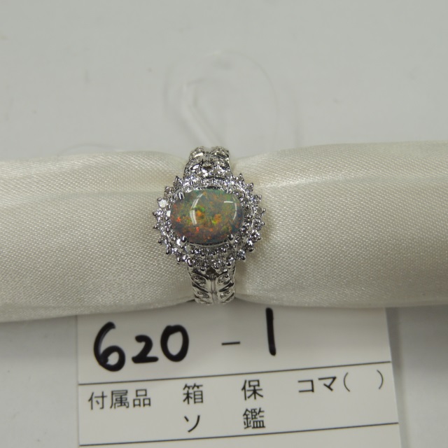 リング オパール Pt900 6.50g 鑑 石目:1.24 D0.40