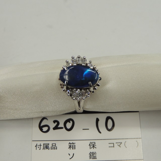リング ブラックオパール ダイヤ Pt900 5.90g 石目:1.4 D0.15