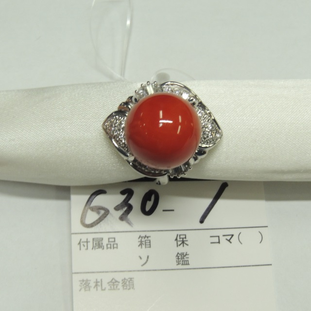 リング サンゴ ダイヤ Pt900 16.50g 石目:0.50