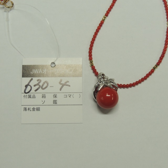 ペン・ネック ダイヤ サンゴ Pt900 15.00g 石目:D0.21