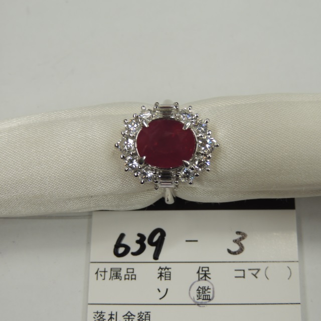 リング ルビー ダイヤ Pt900 9.30g 鑑 石目:R5.02 D1.28
