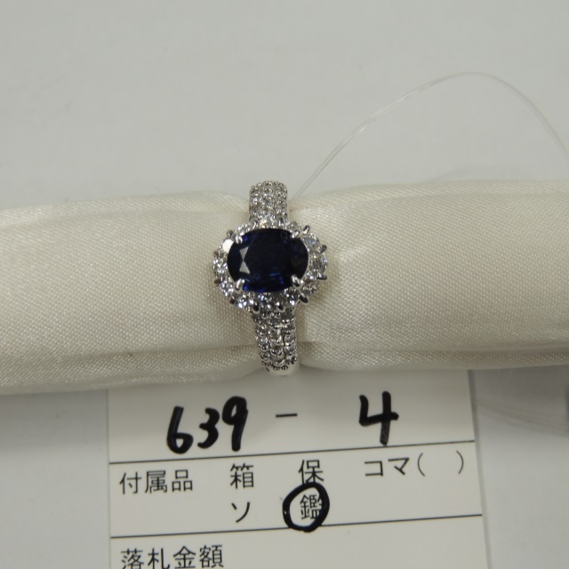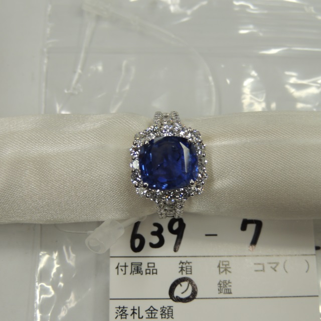 リング 通常サファイア ダイヤ Pt900 6.90g 中ソ 石目:S4.759 D1.15