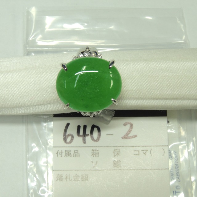リング ヒスイ ダイヤ 含浸処理 Pt900 16.30g ソ 石目:J21.7 D0.25