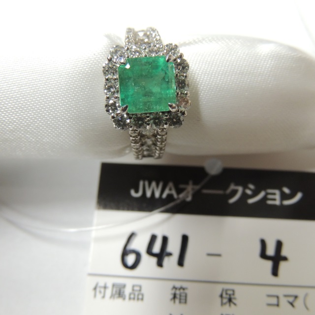 リング エメラルド ダイヤ Pt900 6.50g 石目:E1.96 D1.07