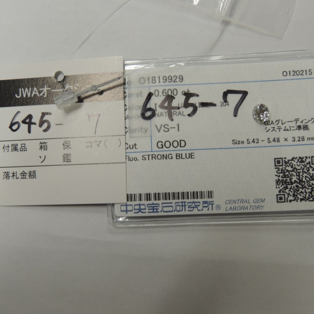 ルース I/VS1/GOOD/SB 中ソ 石目:0.600