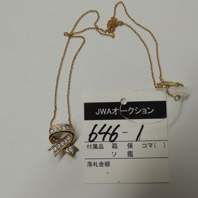 ティファニー ネックレス リボンモチーフ メレダイヤ K18/Pt950 4.92g 袋