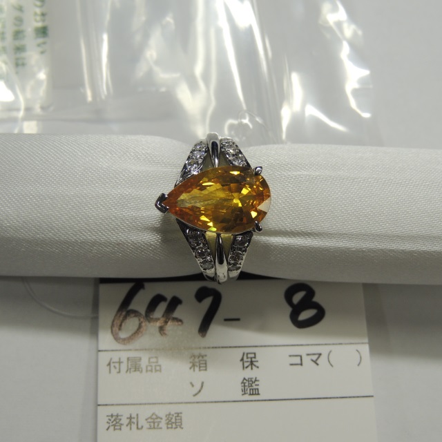リング ゴールデンサファイア ダイヤ Pt900 10.40g 中ソ 石目:4.119 D0.26