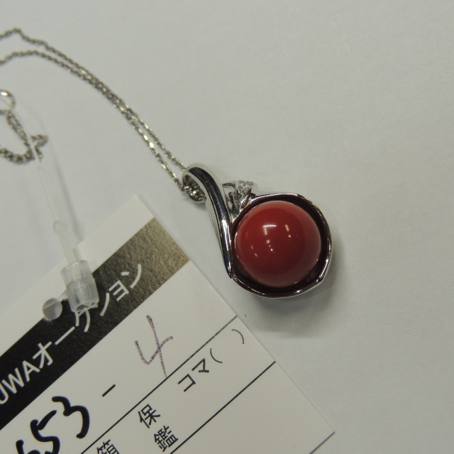 ペン・ネック サンゴ 11.0mm ダイヤ Pt900/Pt850 9.50g 石目:0.06