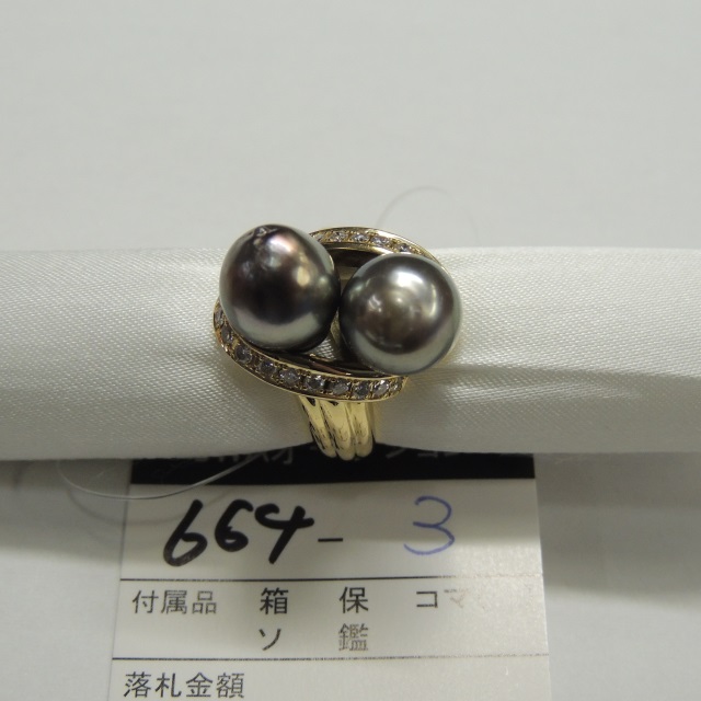 リング 黒蝶パール 10mm up ダイヤ K18 15.20g 石目:0.60