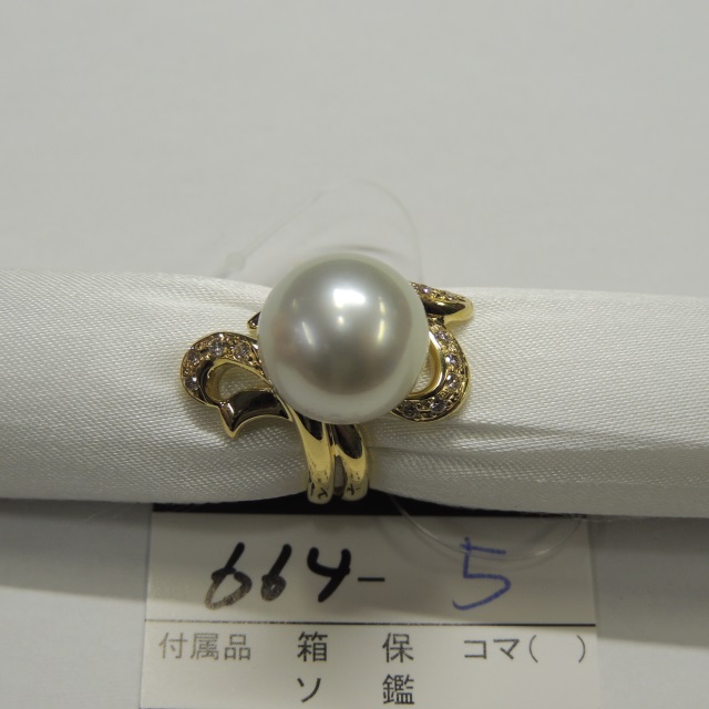 リング 白蝶パール 13.3mm ダイヤ K18 12.50g 石目:0.20