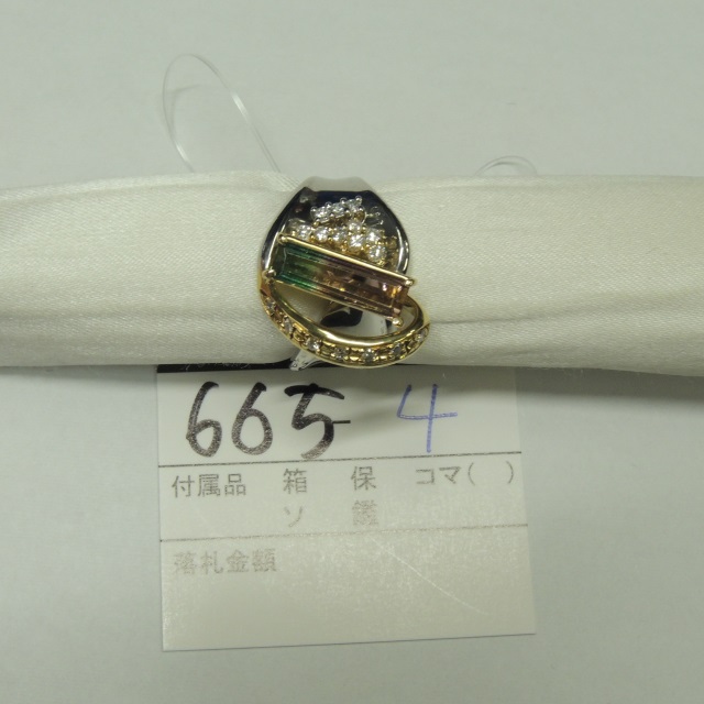 リング トルマリン ダイヤ Pt900/K18 13.60g 石目:1.48 D0.27