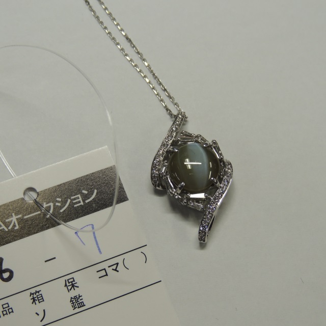 ペン・ネック クリソベリルキャッツアイ ダイヤ K18WG/Pt900 8.70g 石目:6.91 0.51