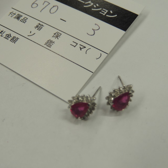 イヤリング ルビー ダイヤ キャッチ無 Pt900 1.40g 石目:R0.52 D0.12 R0.52 D0.12