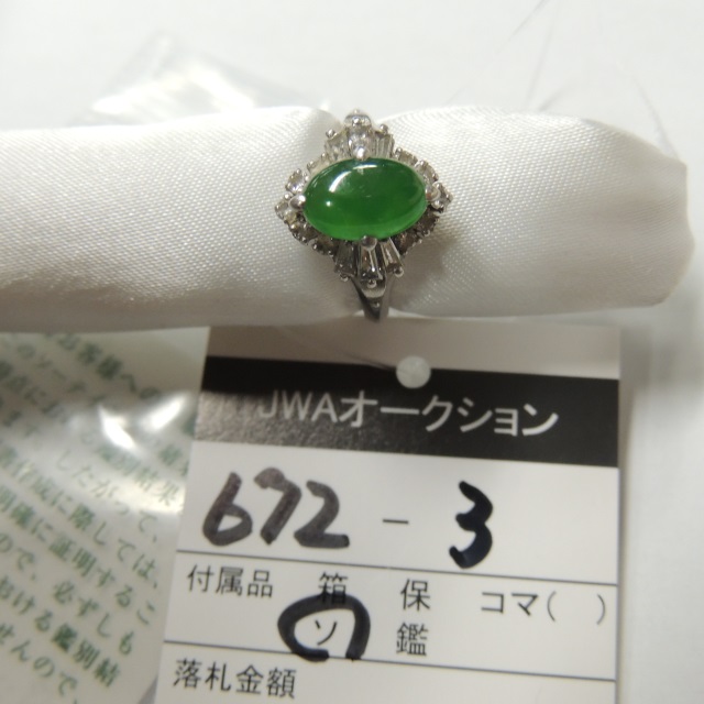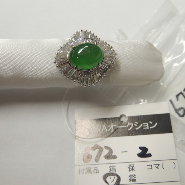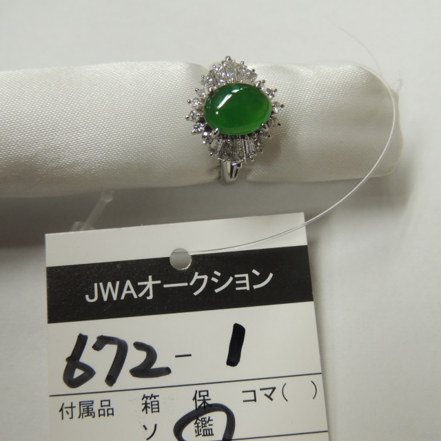 リング ヒスイ ダイヤ Pt900 10.80g 中ソ 石目:J3.10 D2.28