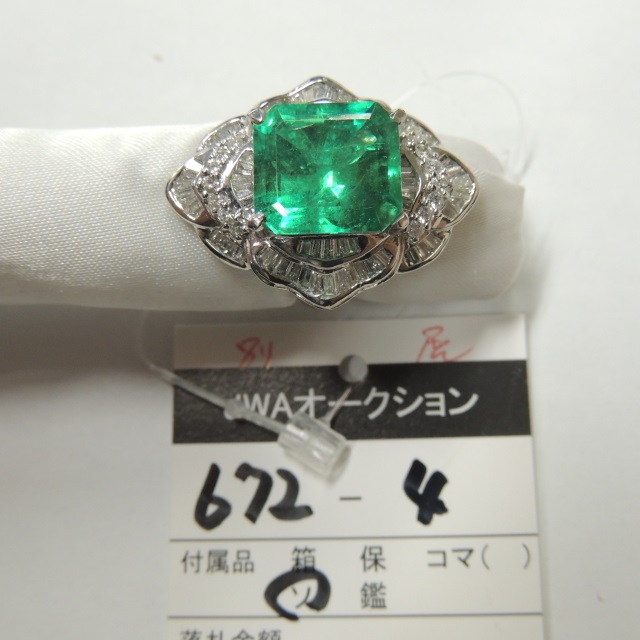 リング エメラルド ダイヤ Pt900 17.50g 石目:E8.88 D1.63