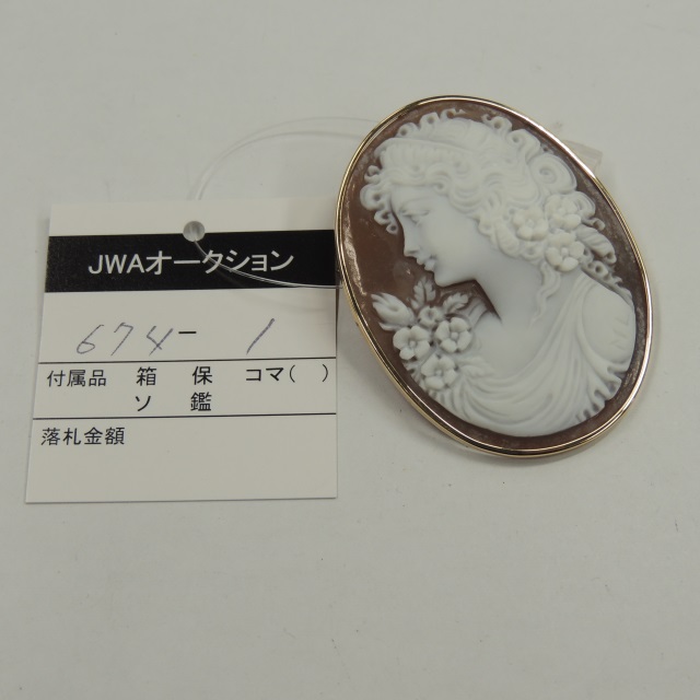 ペン・ブローチ シェルカメオ 50mm K18 12.90g