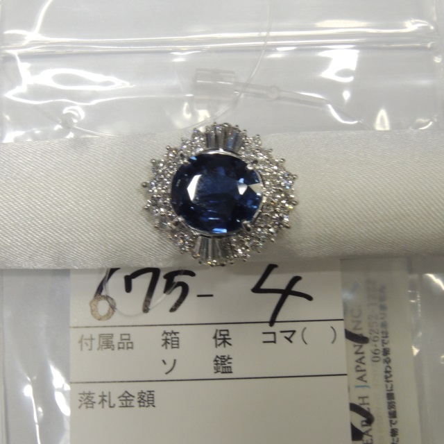 リング ブルーサファイア ダイヤ Pt900 11.10g GRJソ 石目:S3.67 FD1.6