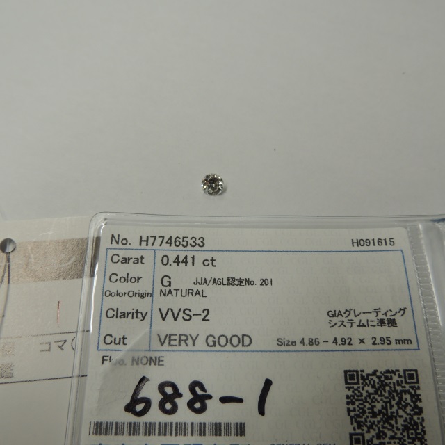 ルース ダイヤ G/VVS2/VG/NONE 中ソ 石目:0.441