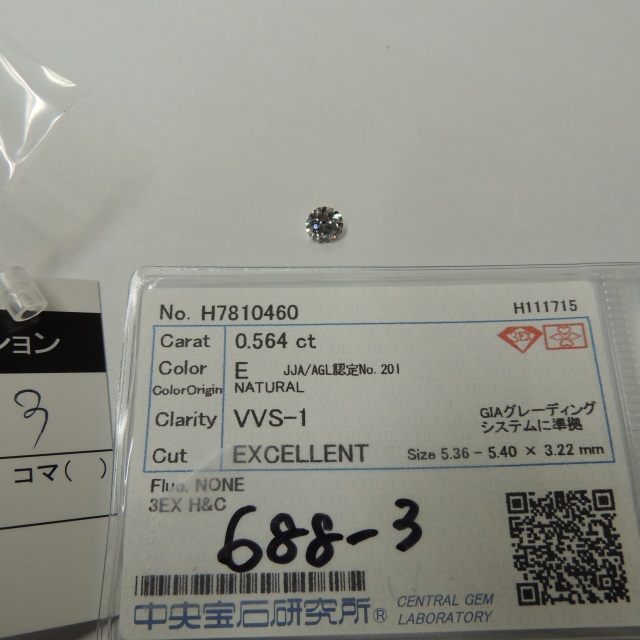 ルース ダイヤ E/VVS1/EX/NONE 3EX/H&C 中ソ 石目:0.564