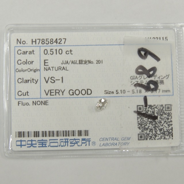 ルース Eカラー VS1/VG/NONE 5.10-5.18×3.17mm 中ソ 石目:0.51