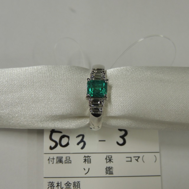 リング エメラルド ダイヤ Pt900 8.20g 鑑 石目:E0.94 D0.38