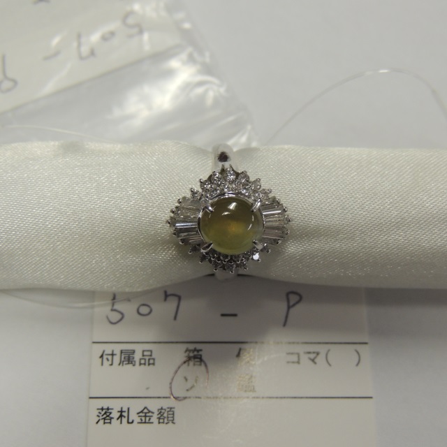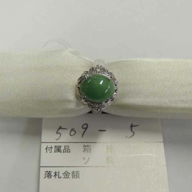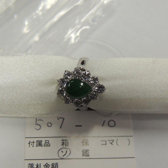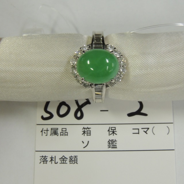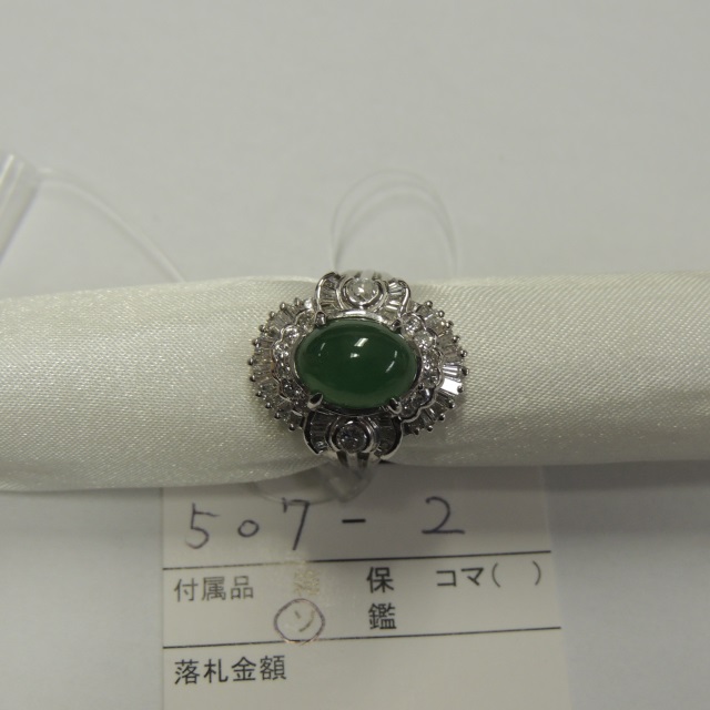 リング ヒスイ ダイヤ Pt900 9.00g ソ 石目:J3.68 D1.28