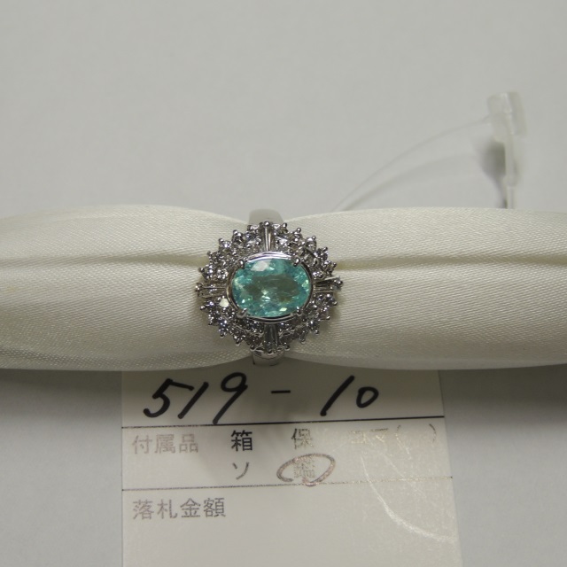 リング パライバトルマリン ダイヤ Pt900 8.80g 中鑑 石目:T1.471 FD0.94