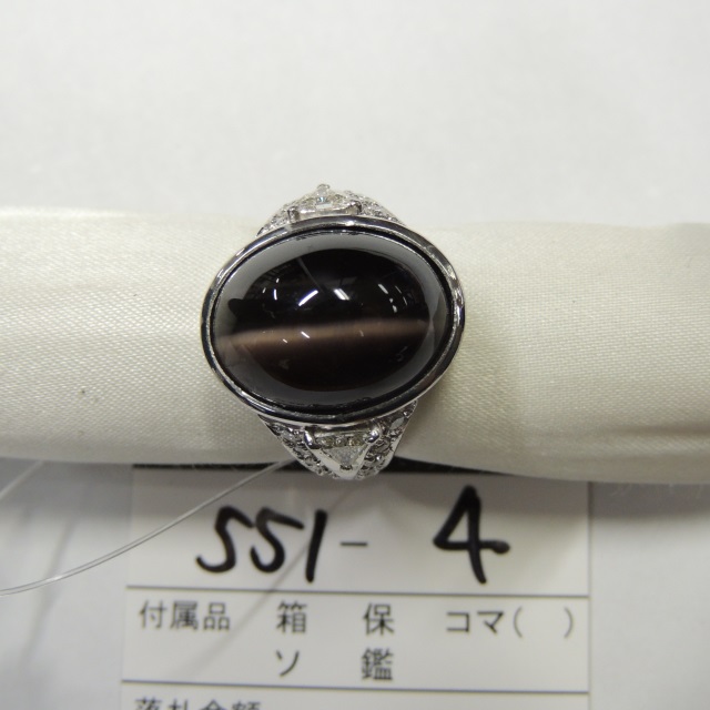 リング シリマナイトキャッアイ ダイヤ Pt900 17.80g 鑑 石目:21.08 0.69