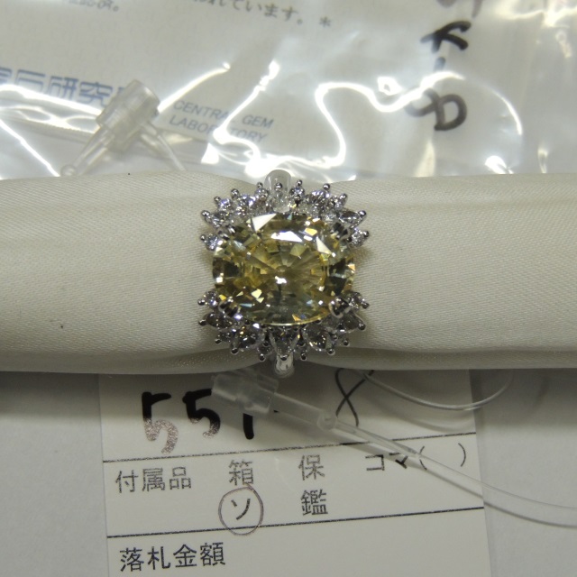リング イエローサファイア ダイヤ Pt900 12.00g 中ソ 石目:7.72 1.41